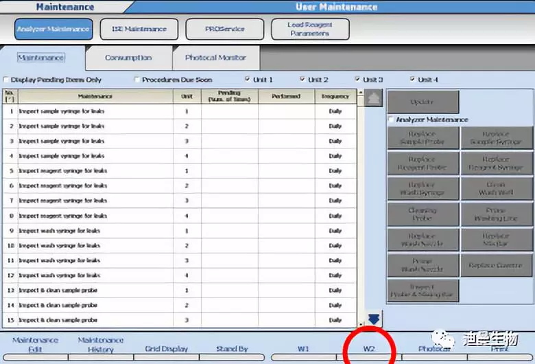 3、在Home>Analyzer Maintenance頁面找到W2按鍵(如下圖);